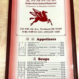 Introducing "Golden Horse," a hidden gem in Portland's bustling food scene. This Chinese seafood restaurant offers a wide range of dishes, from oysters and squid to chicken, duck, vegetables, fried rice, pork, beef, tofu, ceramic pot specialties, appetizers, soups, rice combinations, chow mein, rice porridges, noodle soups, and more. With options like Ginger and Green Onion Oyster, Sesame Beef, and Shrimp and Scallop with Chinese Chow Mein, there's something to satisfy every palate.